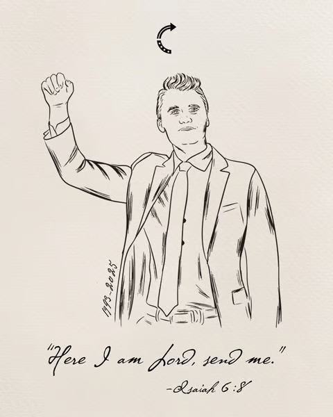 The phrase has recently been used by Turning Point, Charlie Kirk’s movement that has inspired a whole new generation of youth voters. Turning Point have released an official commemorative T-shirt to help immortalise Charlie, and the fact that when God called for someone to step up, he replied “send me”.
